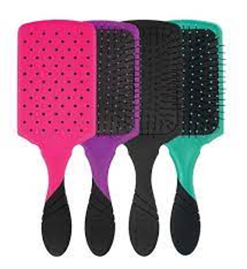 Wet Brush paddle Detangler Brush, heat flex bristles are heat resistant to detangle while you blow dry. Aqua vent design allows for fast drainage and easy clean-up. 20% larger surface area helps to spread conditioning treatments and hair masks evenly throughout hair compared to Original Detangler. Bristles glide through tangles with ease for less pain and breakage.